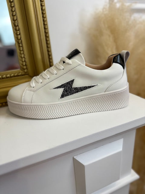 Baskets Eclair Tania Blanc Et Noir À Paillettes