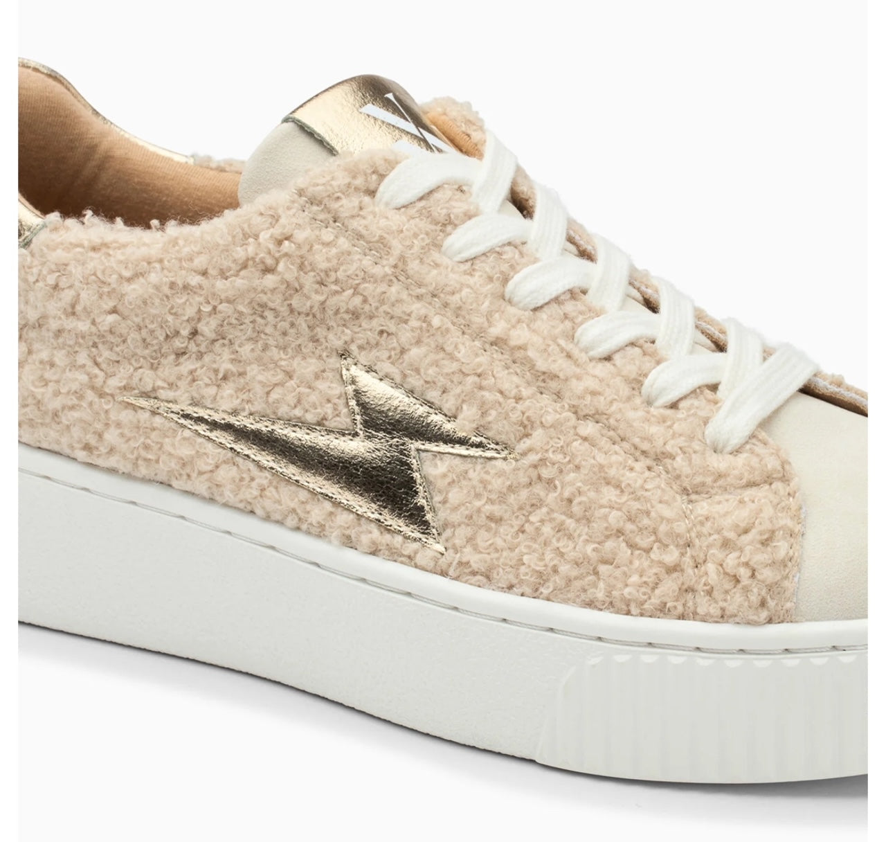 Baskets Éclair Ava Beige Et Or En Fausse Fourrure