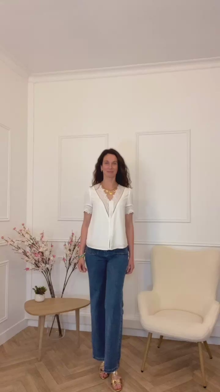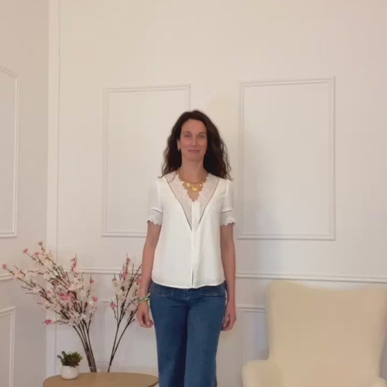 Une pièce raffinée et tout en légèreté, parfaite pour sublimer vos looks du quotidien. La blouse écrue séduit par ses jeux de transparence subtils, sa broderie délicate et son tombé fluide. Avec son encolure en V et ses manches travaillées, elle est aussi élégante que facile à porter.