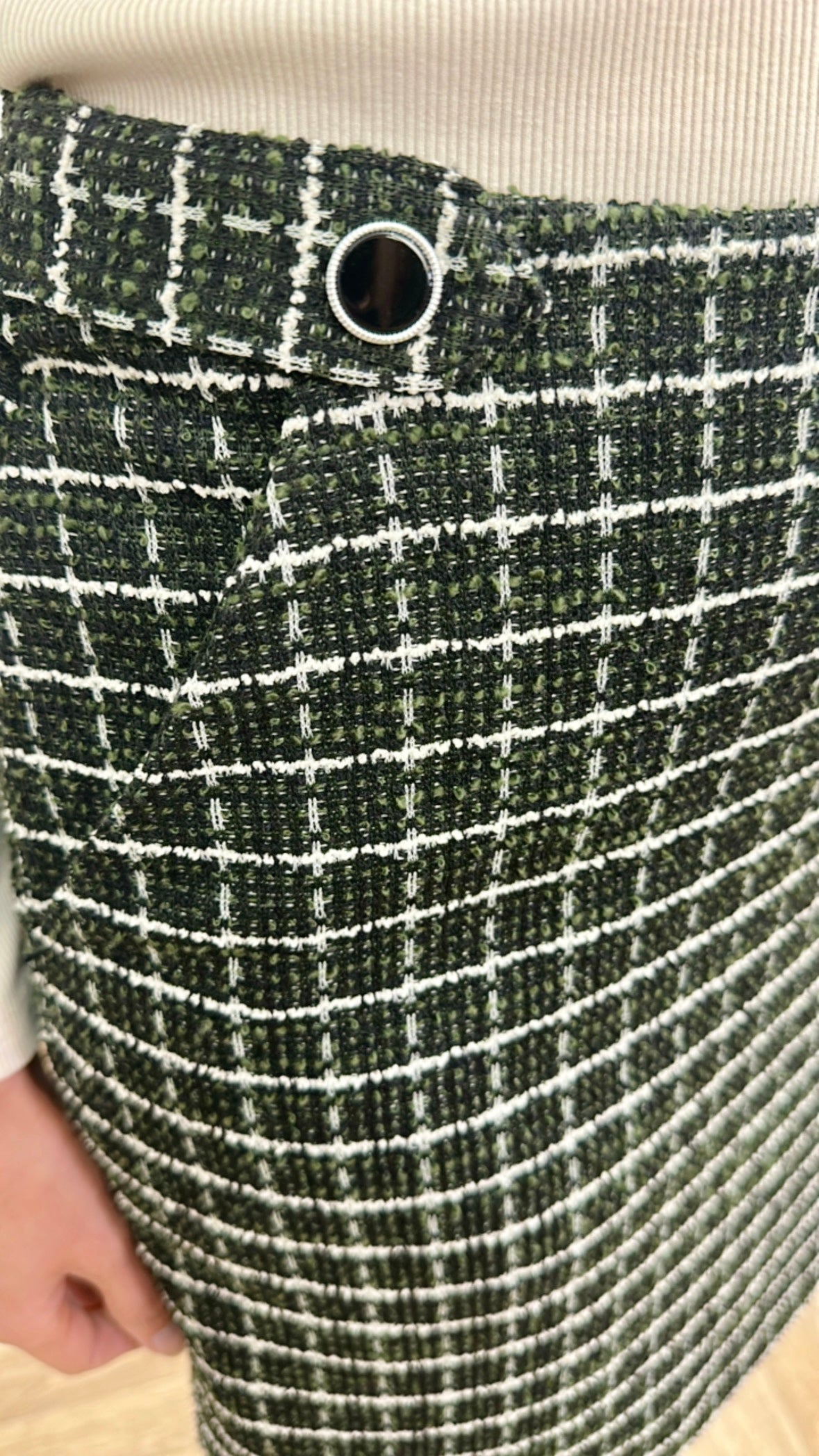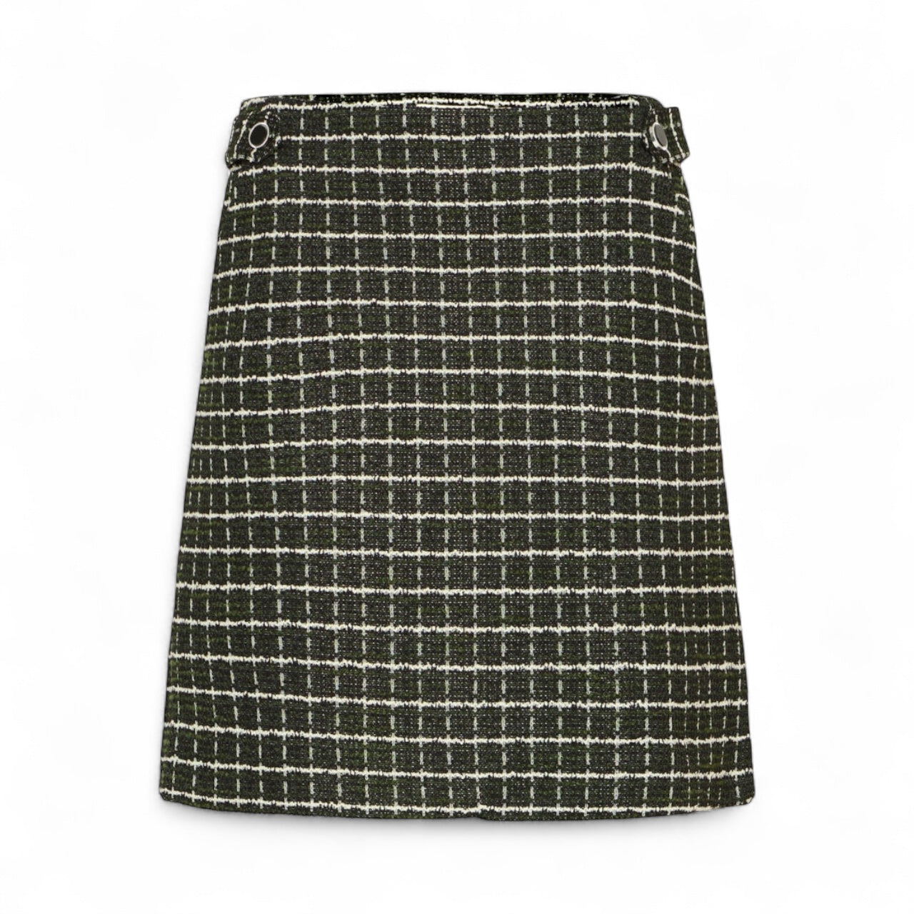 Avec son esprit chic et son tissu texturé façon tweed, la jupe Magali Kate est la pièce parfaite pour twister vos looks de saison. Sa coupe courte légèrement évasée met en valeur la silhouette, tandis que son motif à carreaux noir et vert lui donne un style résolument moderne.