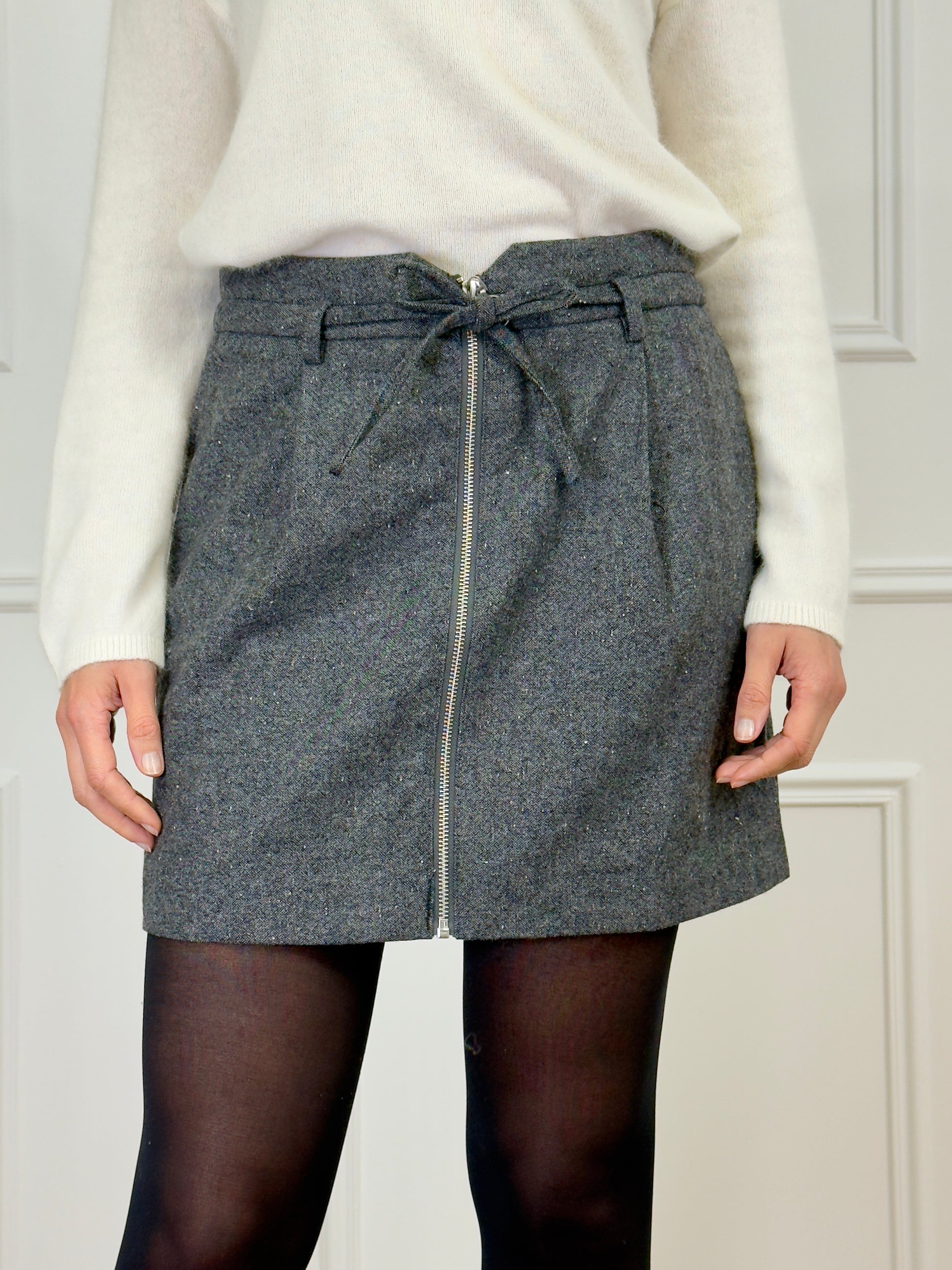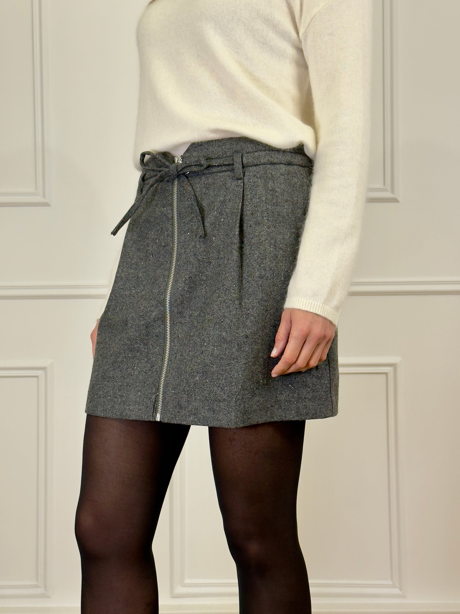 Notre Jupe Jemma Ma&Me, une pièce intemporelle au charme citadin. Sa coupe droite modernisée par une fermeture zippée sur le devant et un lien à nouer à la taille en font une jupe pratique et élégante à porter au quotidien.