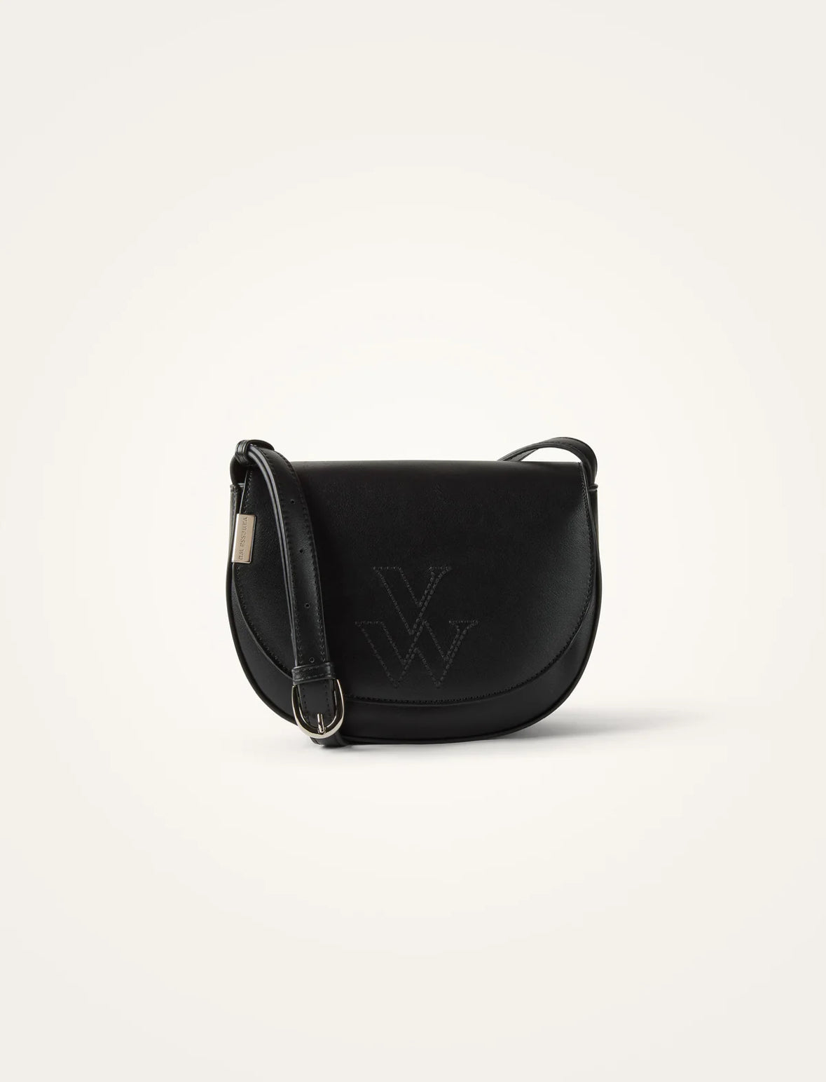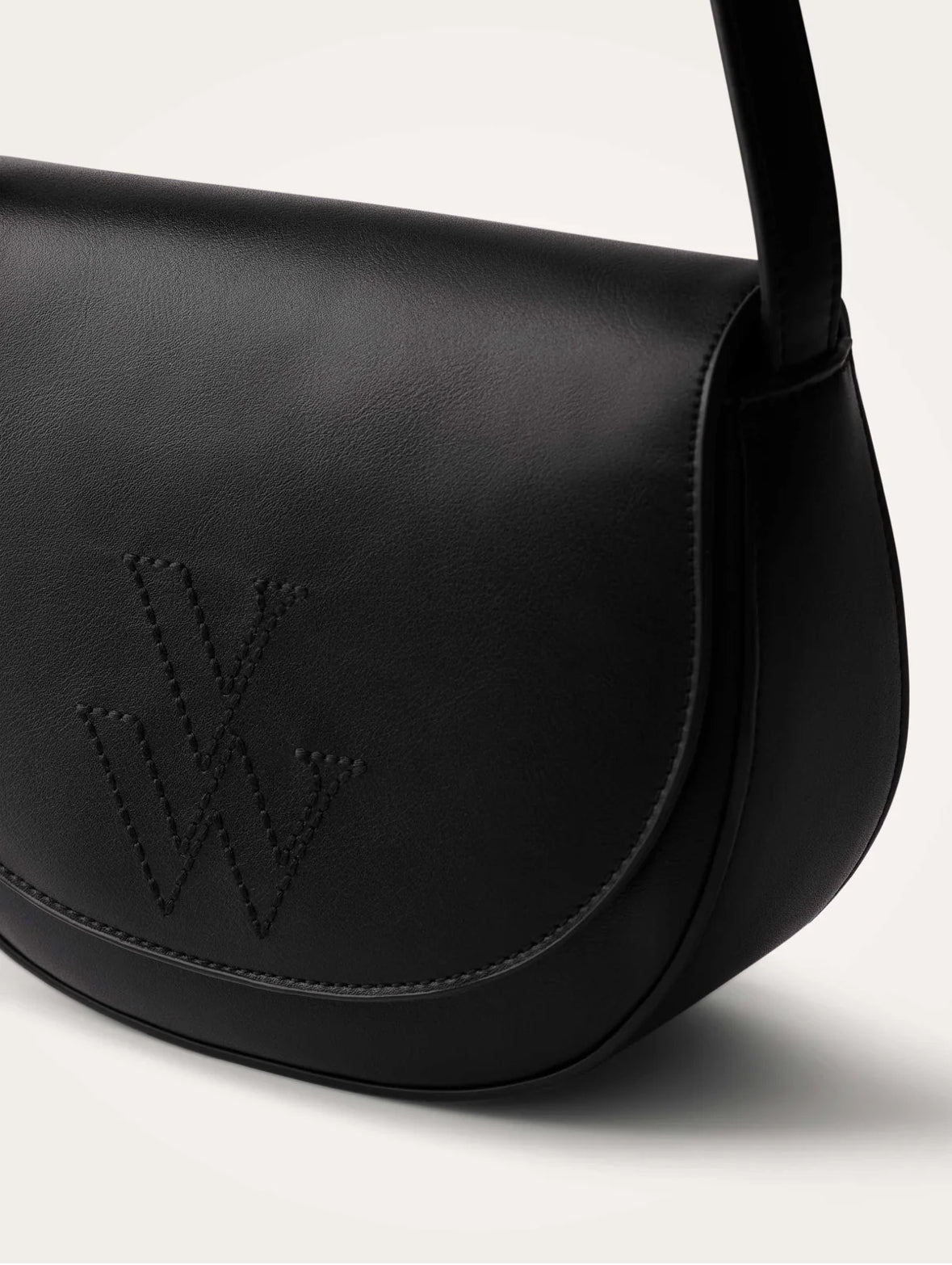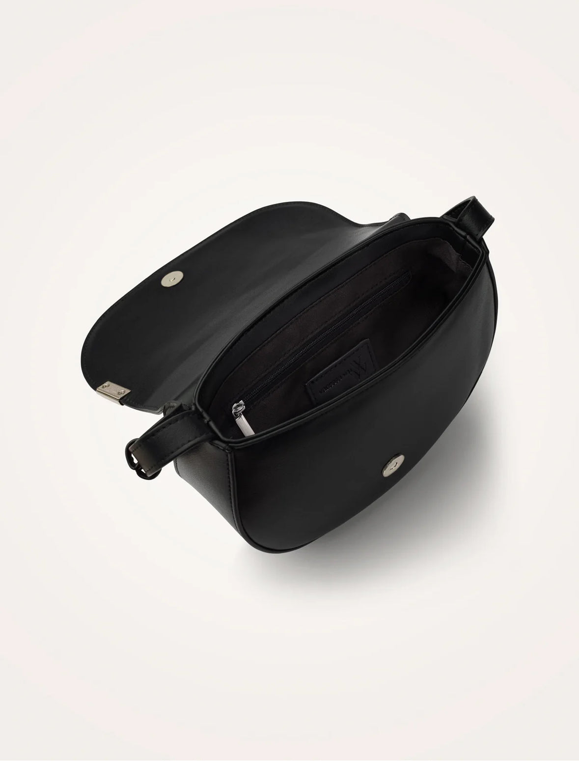 Un sac bandoulière chic et intemporel qui allie praticité et élégance. Réalisé en simili cuir noir, il séduit par son design minimaliste relevé d’un monogramme ton sur ton. Sa fermeture à rabat aimantée et sa boucle dorée apportent une touche raffinée.
