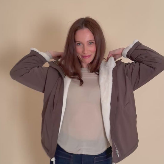 Une pièce essentielle pour l’automne-hiver, alliant confort absolu et allure chic. Sa coupe légèrement oversize, sa matière déperlante et sa capuche intégrée en font la parka idéale pour affronter les journées fraîches avec style. On craque pour sa doublure en fausse fourrure crème, ultra douce, que l’on aime porter à même la peau — jusque dans la capuche et les poches.