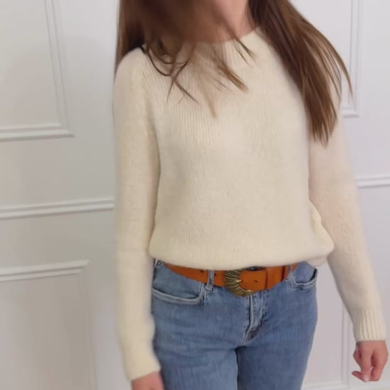 Un essentiel cocooning et élégant qui apporte douceur et lumière à votre dressing. Sa maille moelleuse en alpaga et sa teinte écrue intemporelle en font une pièce facile à associer, aussi bien avec vos basiques denim qu’avec des pièces plus habillées. Léger et chaud à la fois, il se porte aussi bien seul qu’en superposition.
