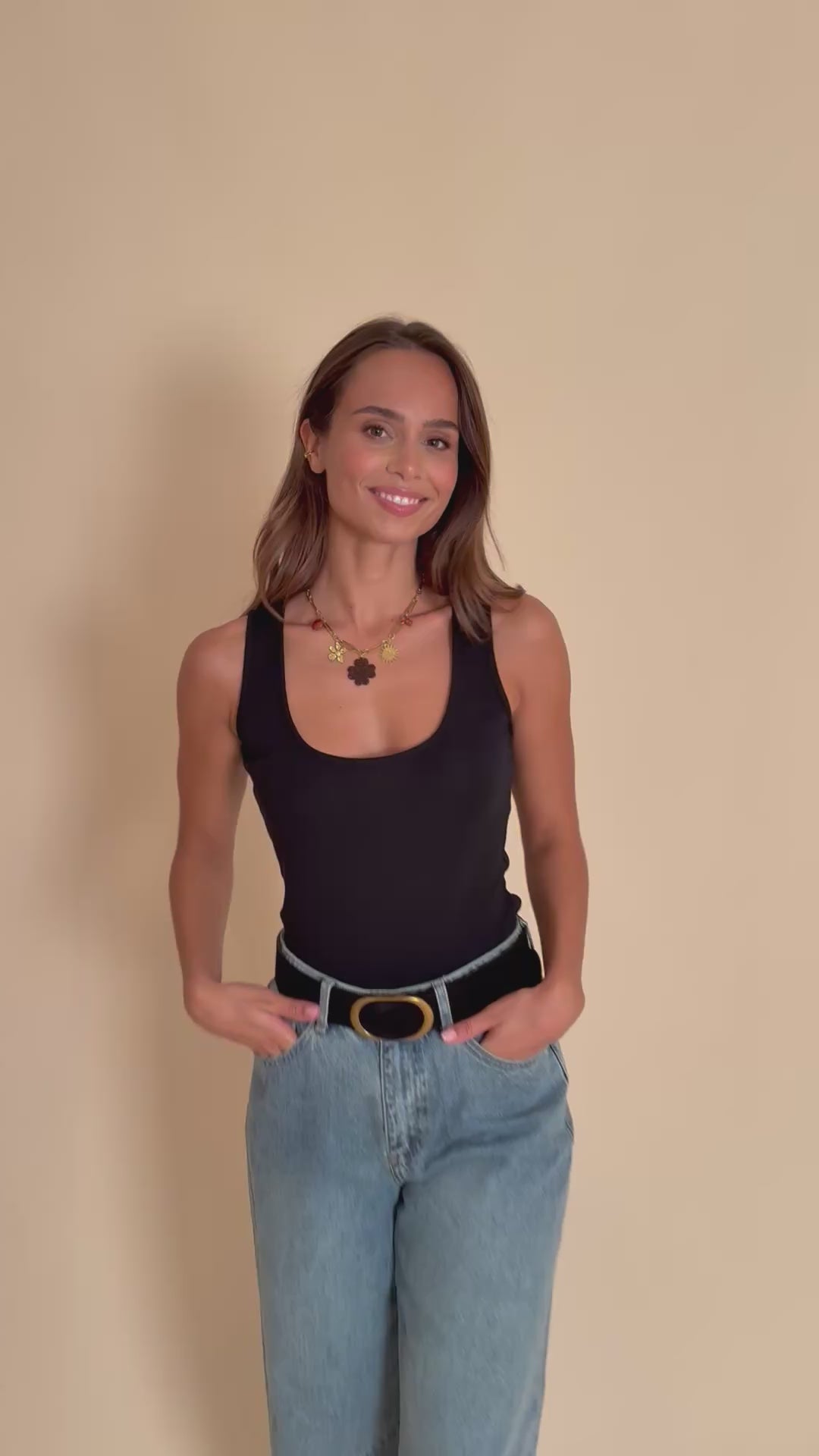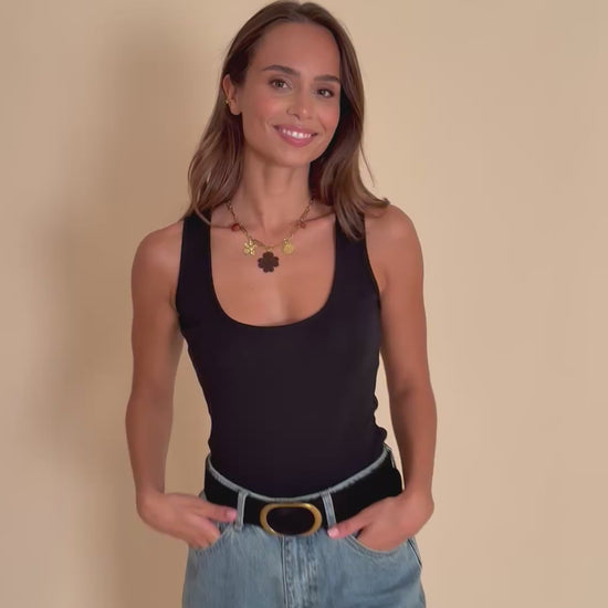 Un essentiel du vestiaire féminin, simple et efficace. Avec sa coupe ajustée et son coloris noir profond, ce débardeur se porte aussi bien seul en été que sous une veste ou un gilet à la mi-saison. Sa matière douce et légèrement stretch en fait une pièce confortable et facile à associer.