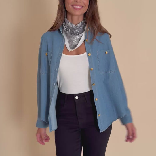Une pièce essentielle au charme décontracté. Confectionnée en 100% coton, elle séduit par sa coupe fluide et son coloris denim clair qui traverse les saisons sans se démoder. À la fois souple et structurée, elle se porte facilement ouverte sur un débardeur ou fermée pour un style plus affirmé.