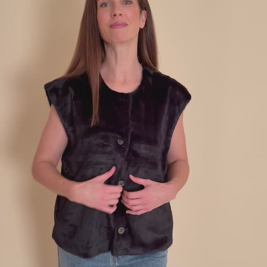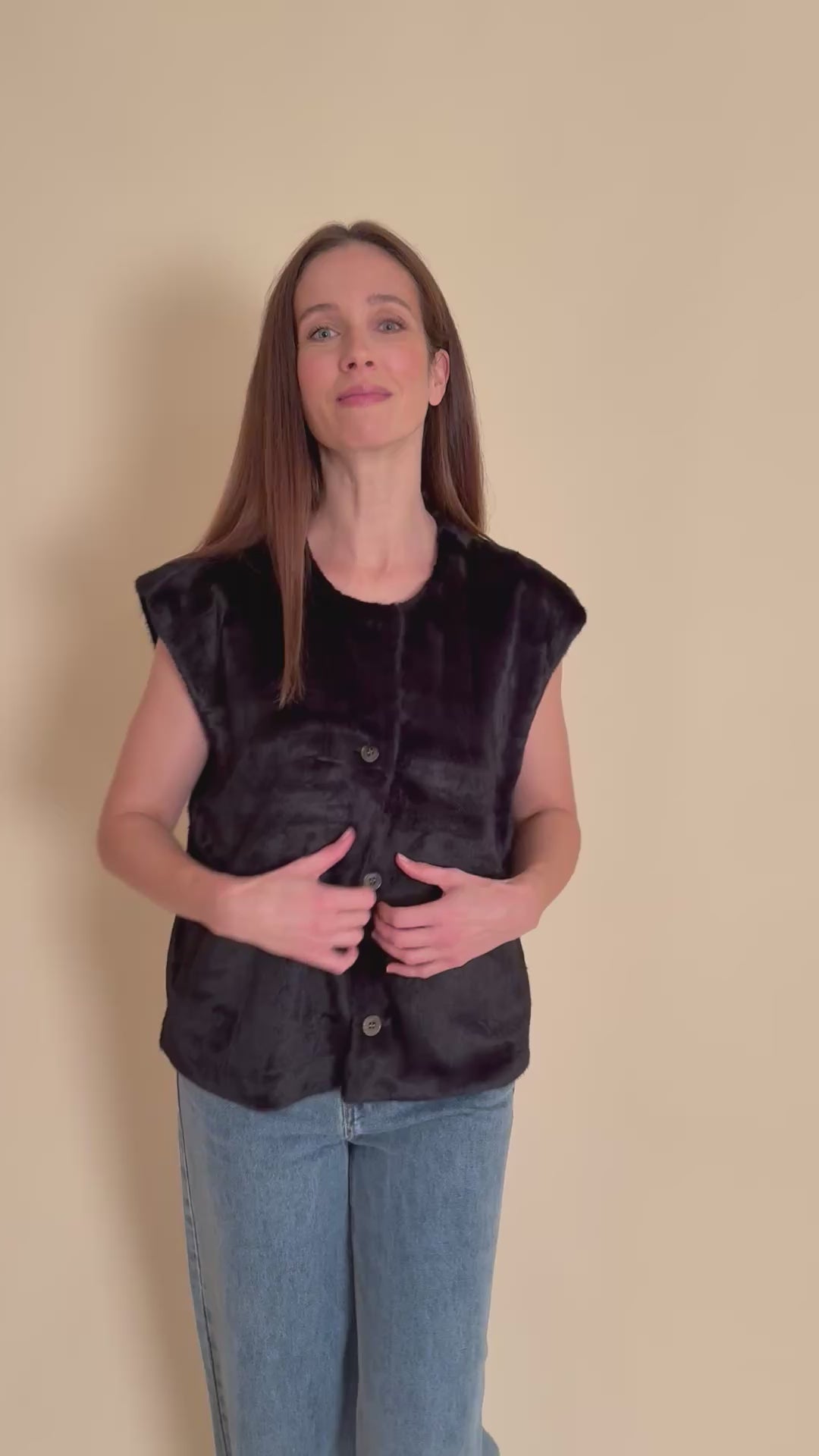 Une pièce élégante et chaleureuse qui sublime instantanément toutes vos tenues. Le Gilet Exquis Noir Ma&Me séduit par son toucher doux façon fausse fourrure et son intérieur imprimé aux accents bohèmes. Parfait pour jouer la carte du layering, il apporte une note de sophistication à vos looks d’automne comme d’hiver.