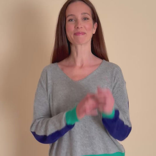 Un pull color-block élégant et original qui apporte une touche de modernité à vos looks. Sa base grise douce est relevée par un dos bleu intense et des finitions vert émeraude contrastantes. Confortable et léger, il se porte facilement au quotidien pour donner du caractère à vos tenues.