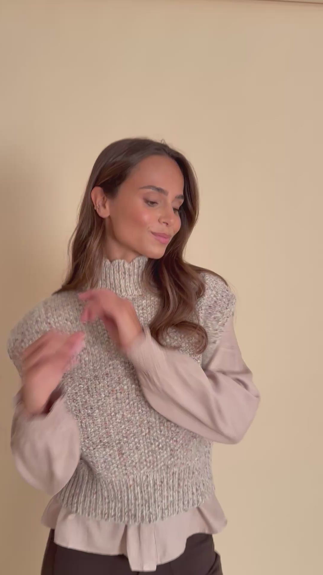 Portez le pull Solarium par-dessus une blouse écrue ou un col montant près du corps, associé à un pantalon foncé pour un contraste élégant. Ajoutez une paire de bottines et un manteau camel pour une allure automnale chic et décontractée.