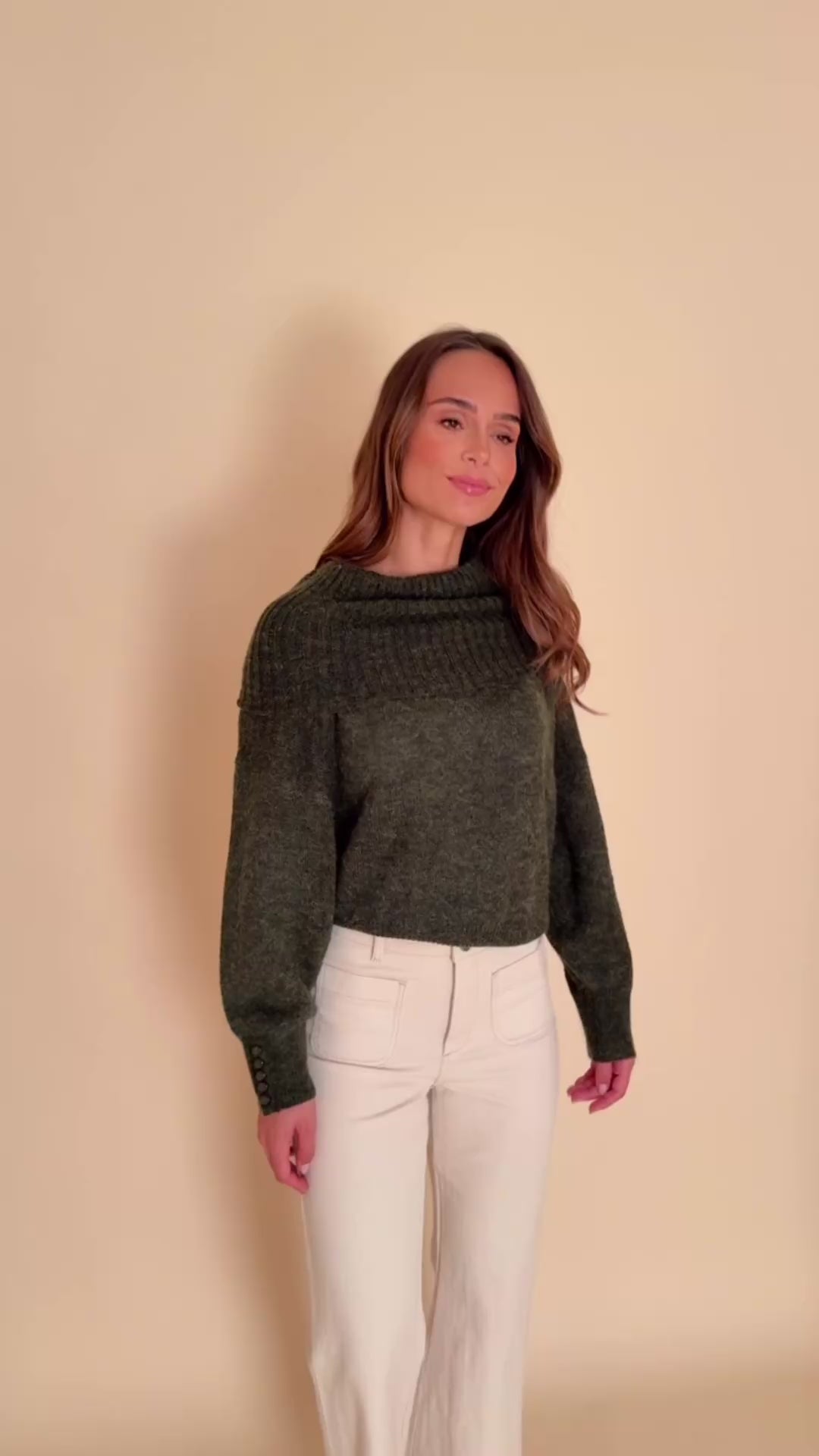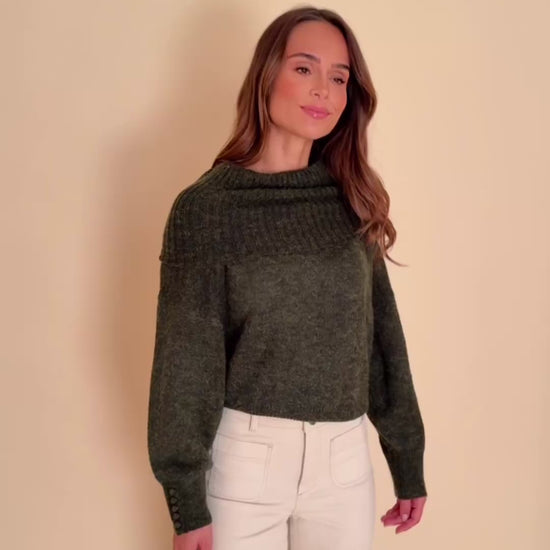 Un pull doux et enveloppant qui joue sur deux attitudes : col roulé cosy ou épaules délicatement dévoilées. Sa maille moelleuse apporte chaleur et confort, tandis que ses boutons raffinés au poignet signent un look féminin et tendance.
