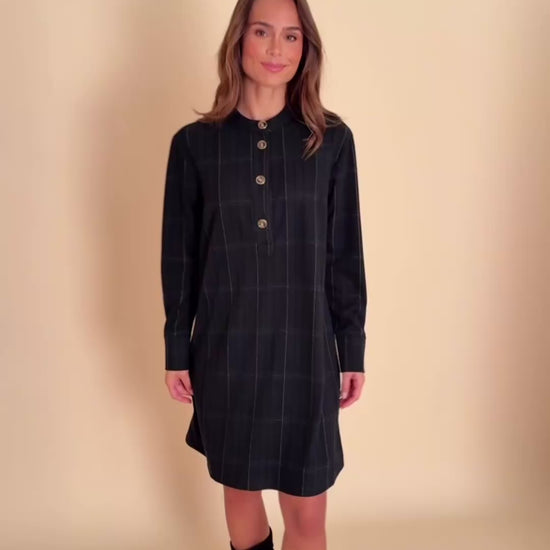 Une robe chemisier au charme intemporel, rehaussée de fines lignes vertes qui structurent la silhouette avec élégance. Sa coupe droite et son tombé souple offrent un confort absolu, tandis que les boutons marbrés apportent la touche chic qui fait toute la différence. Une pièce facile, moderne, parfaite pour l’automne-hiver.
