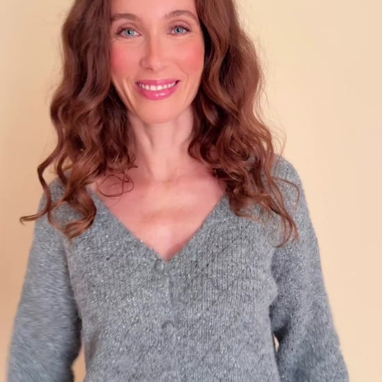Associez-le à un pantalon noir fluide ou un jean gris pour un look d’hiver moderne et lumineux. Ajoutez un collier doré discret ou une boucle d’oreille lumineuse pour souligner les reflets délicats de la maille.