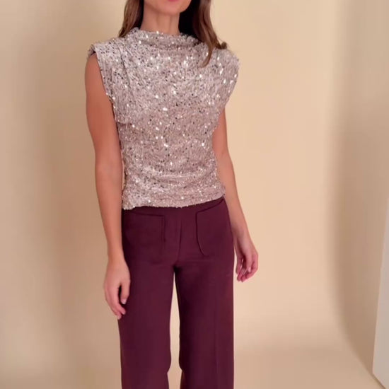 Associez-le à un top à sequins écru ou rosé pour un look lumineux et féminin, ou à un pull oversized crème pour une allure chic et cosy. Avec des bottines ou des baskets blanches, il se porte du matin jusqu’au soir sans effort.